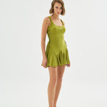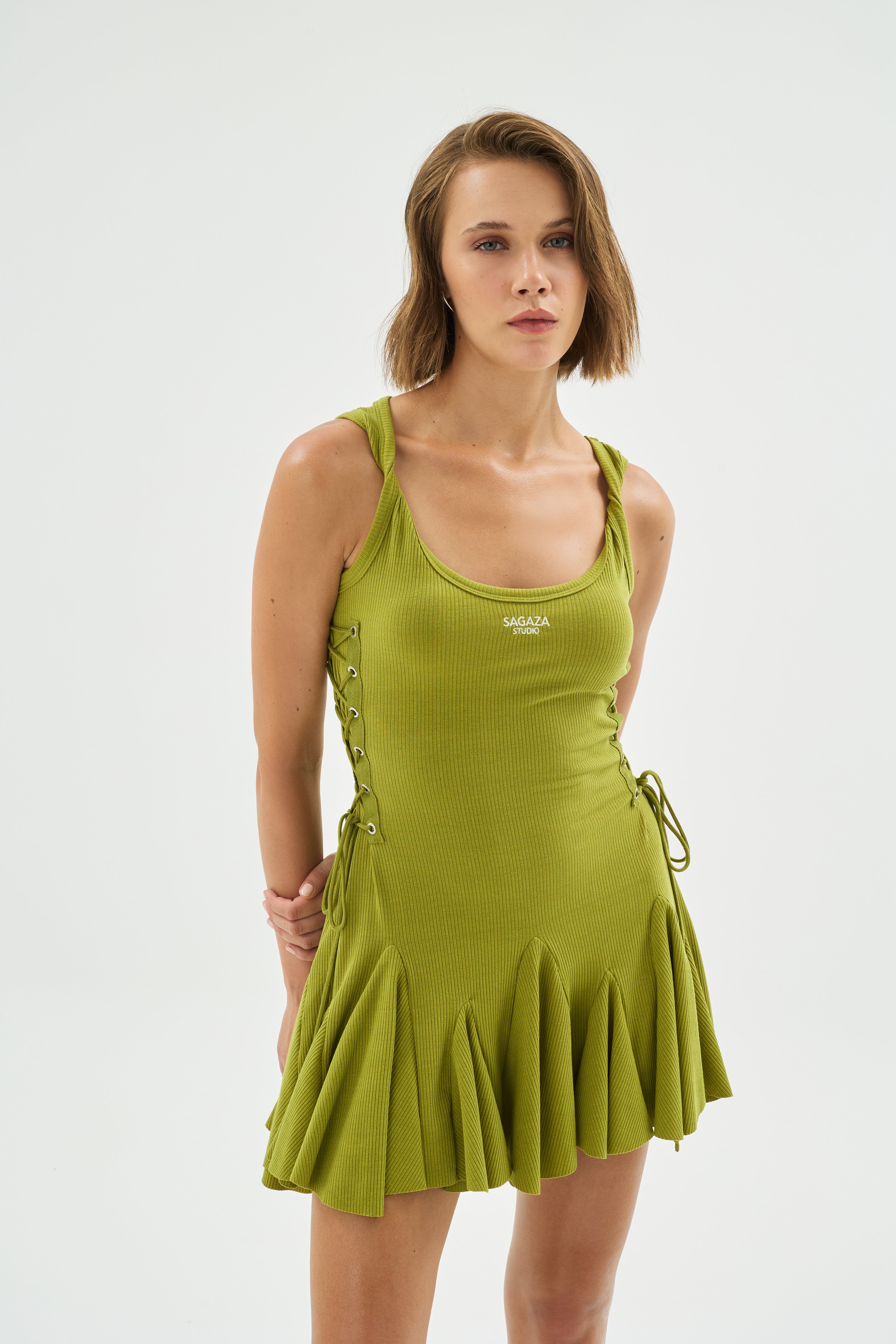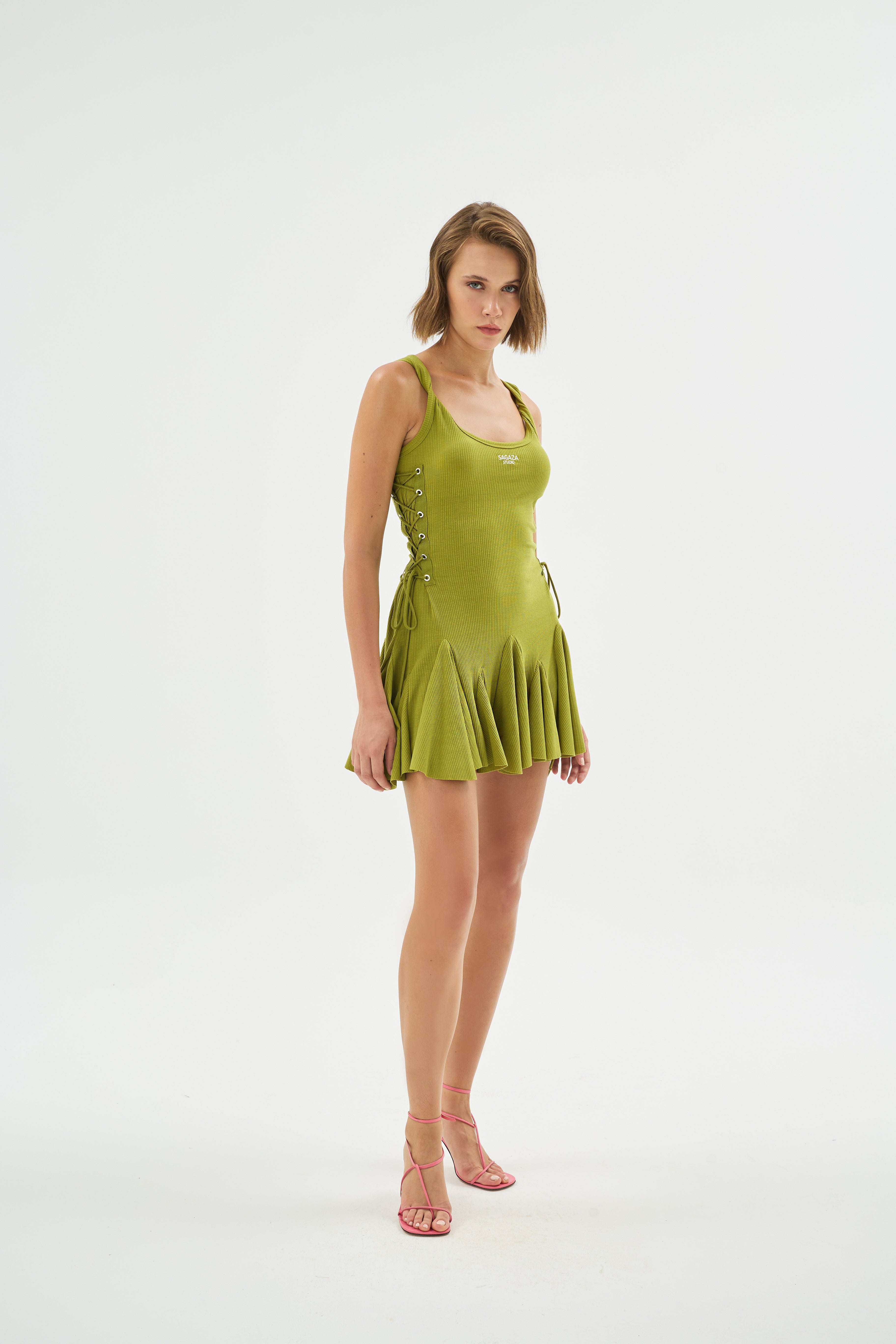 Askılı, mendil detaylı, likralı mini elbise.; % 95 polyester %5 elestan