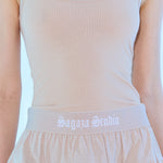 SAGAZA logo lastik detaylı, fırfır etekli, kalın askılı mini elbise.;% 95 polyester %5 elestan