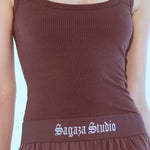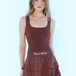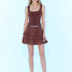 SAGAZA logo lastik detaylı, fırfır etekli, kalın askılı mini elbise.;% 95 polyester %5 elestan