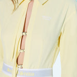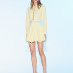 Sarı, önden metal aksesuar detaylı, SAGAZA logo lastik kemerli, uzun kollu gömlek mini elbise.; MODEL BOYU: 1.78 CM MODEL BEDENİ : 34 MODELİN BELİ : 60 CM BASENİ :91 CM DİR .; %50 PAMUK %50 POLYESTER
