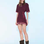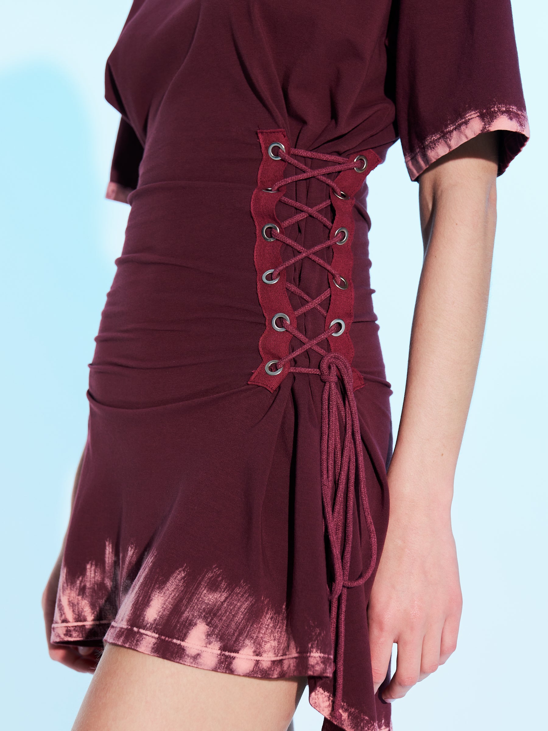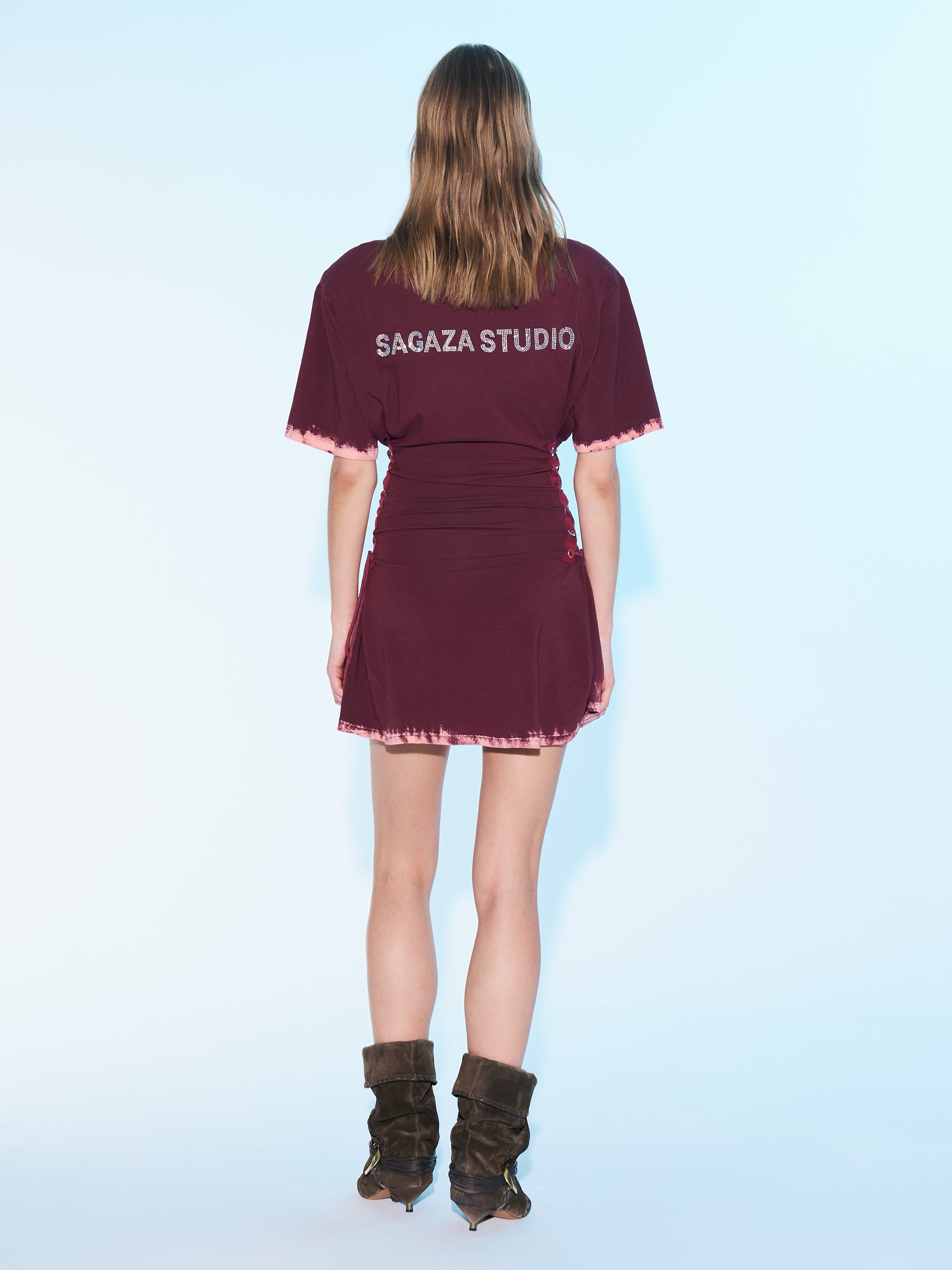 SAGAZA LOGO TAŞ BASKI DETAYLI, YANLARDA KUŞGÖZÜ İP DETAYLI, GENİŞ KOLLU MİNİ ELBİSE.; MODEL BOYU:1.78 CM MODEL BEDENİ: 34 MODELİN ÖLÇÜLERİ: GÖĞÜS:92 CM BEL: 60 CM BASEN:91 CM DİR.; OMUZDAN BOY:88 CM GÖGÜS:60 CM BEL:58 CM ETEK UCU:67 %96 PAMUK %4 ELASTAN