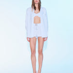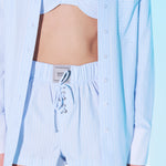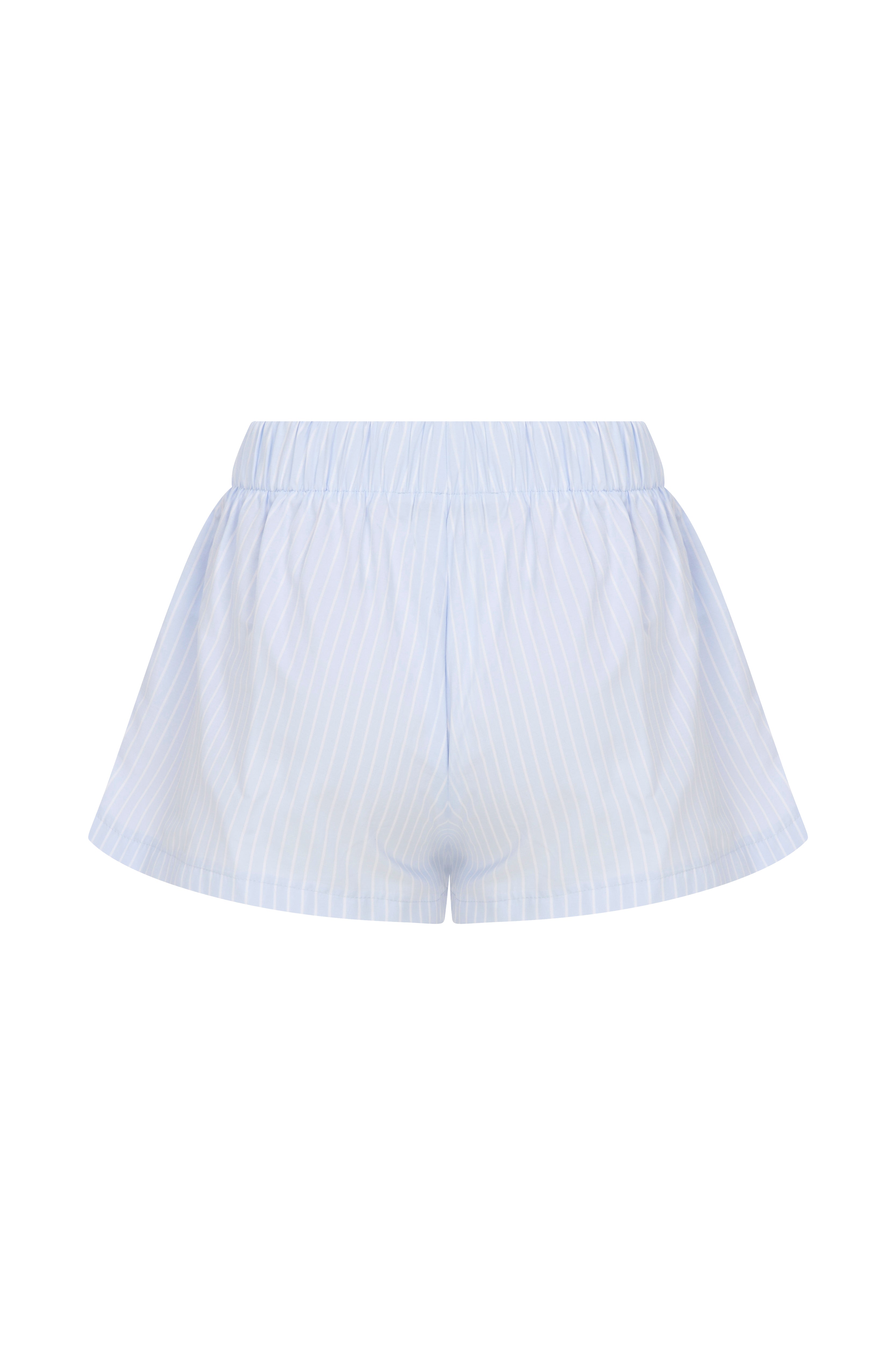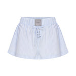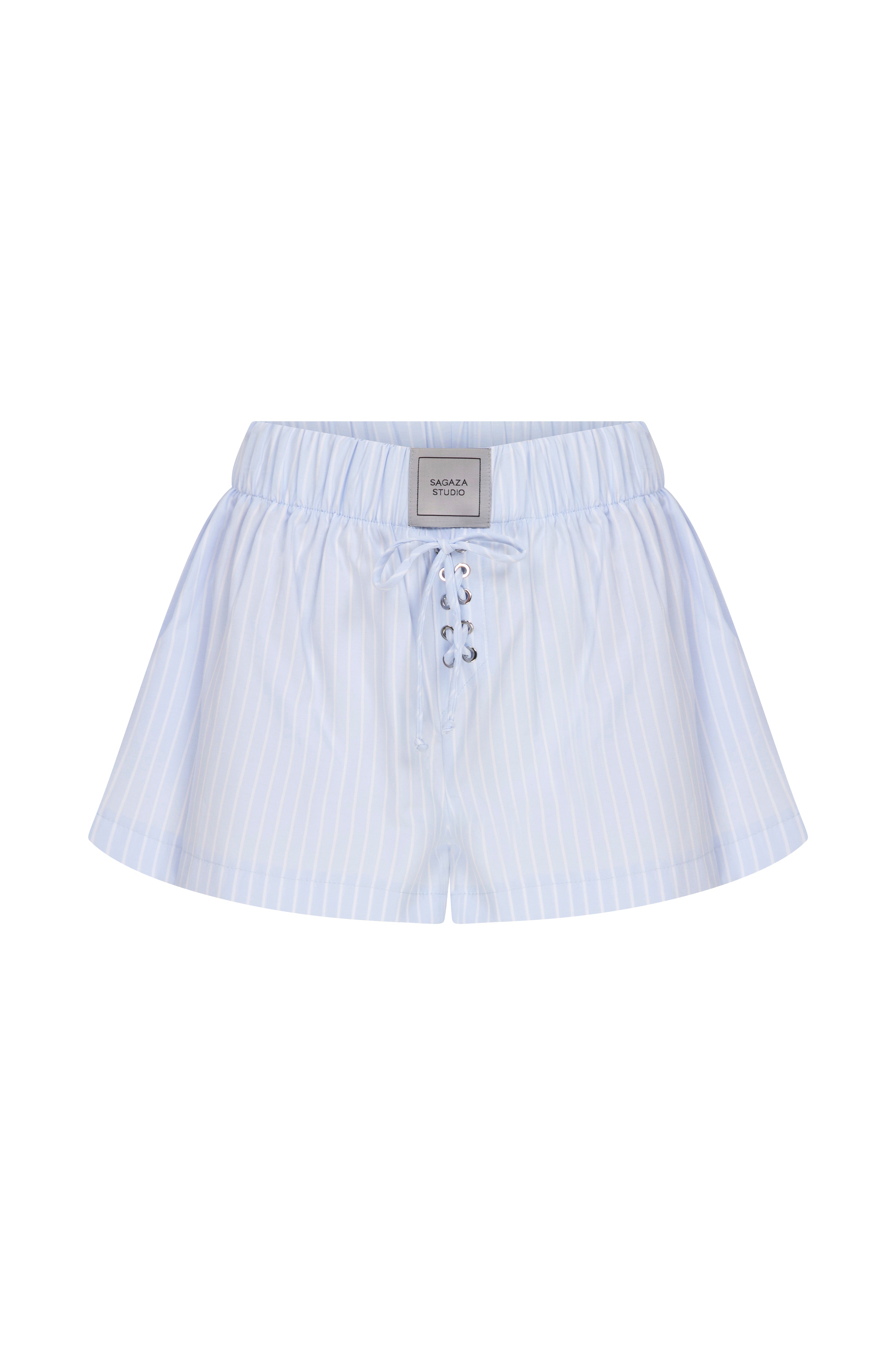 MAVİ BEYAZ ÇİZGİLİ BAĞCIKLI YÜKSEK BEL MİNİ ŞORT MODEL BOYU:1.78 CM MODEL BEDENİ: 34 MODELİN ÖLÇÜLERİ: GÖĞÜS:92 CM BEL: 60 CM BASEN:91 CM DİR.; YAN BOY:31CM BEL:33 CM PAÇA :39 CM İÇ BOY:5 CM %50 PAMUK % 50POLYESTER