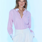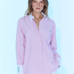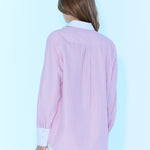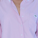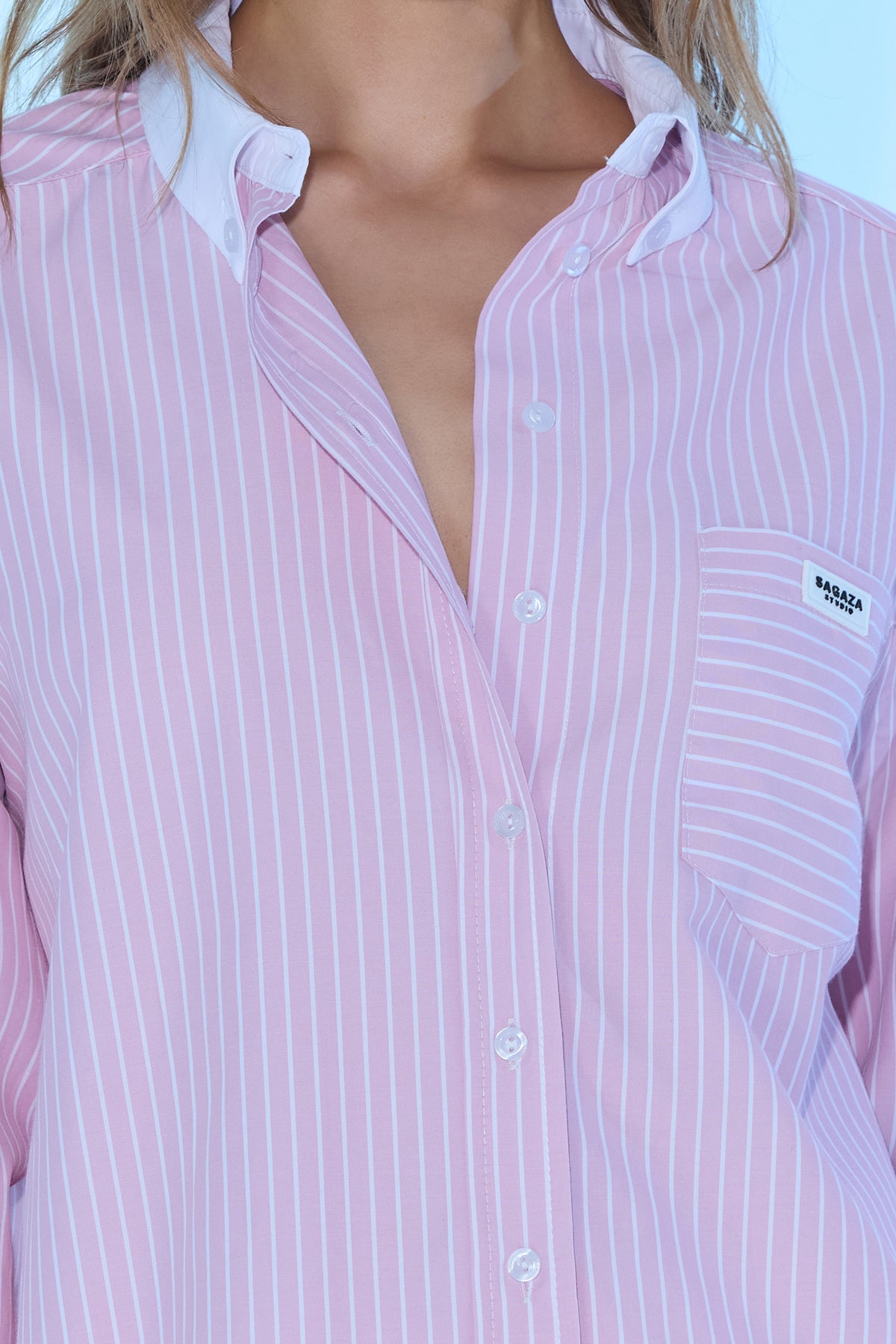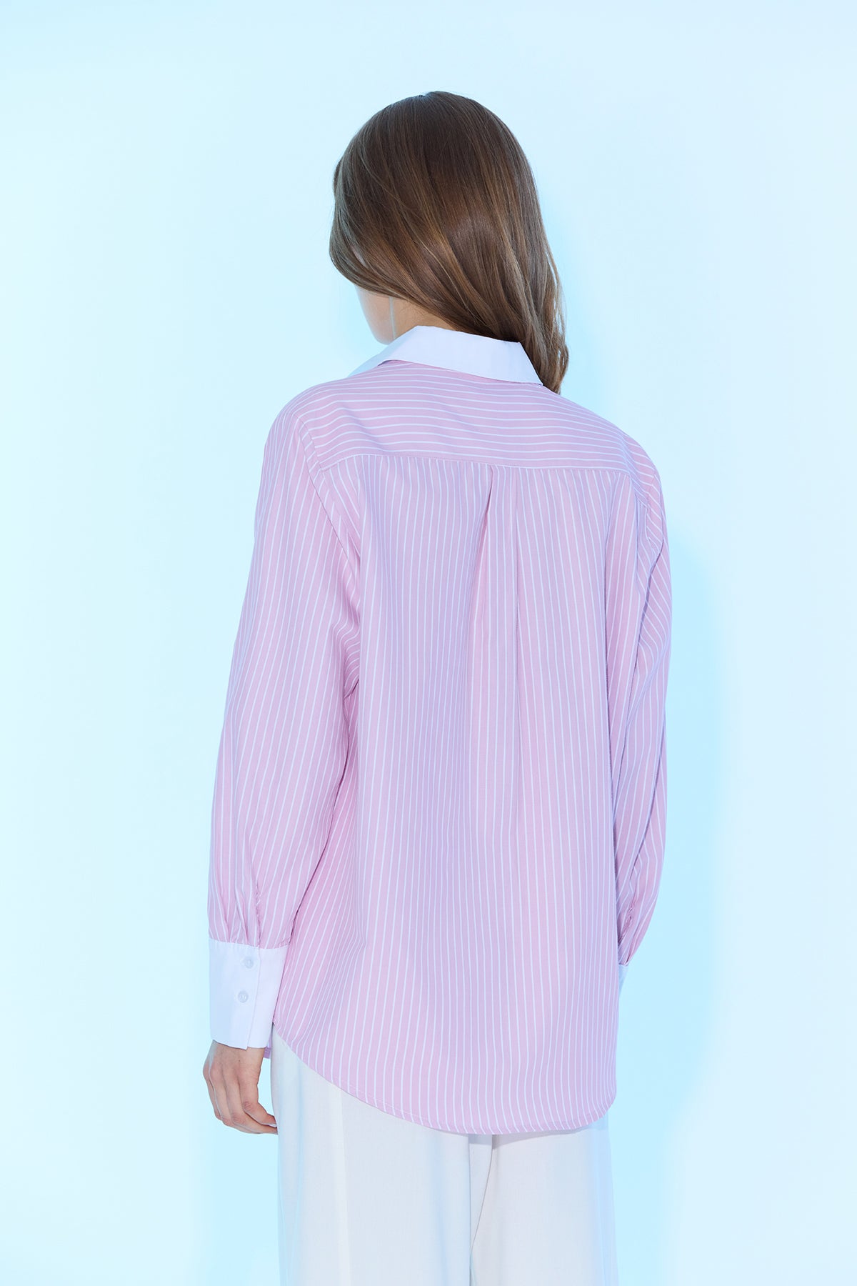 PEMBE BEYAZ ÇİZGİLİ, BEYAZ YAKA VE MANŞET DETAYLI, OVERSİZE, UZUN KOLLU, CEPLİ GÖMLEK.; MODEL BOYU:1.78 CM MODEL BEDENİ: 34 MODELİN ÖLÇÜLERİ: GÖĞÜS:92 CM BEL: 60 CM BASEN:91 CM DİR.; OMUZDAN BOU:75 CM GÖGÜS:56 CM BEL:35 CM ETEK UCU:55 CM KOL BOYU:62 CM %50 PAMUK % 50POLYESTER