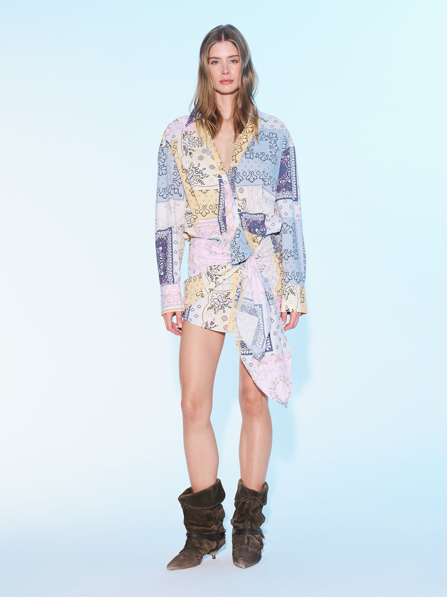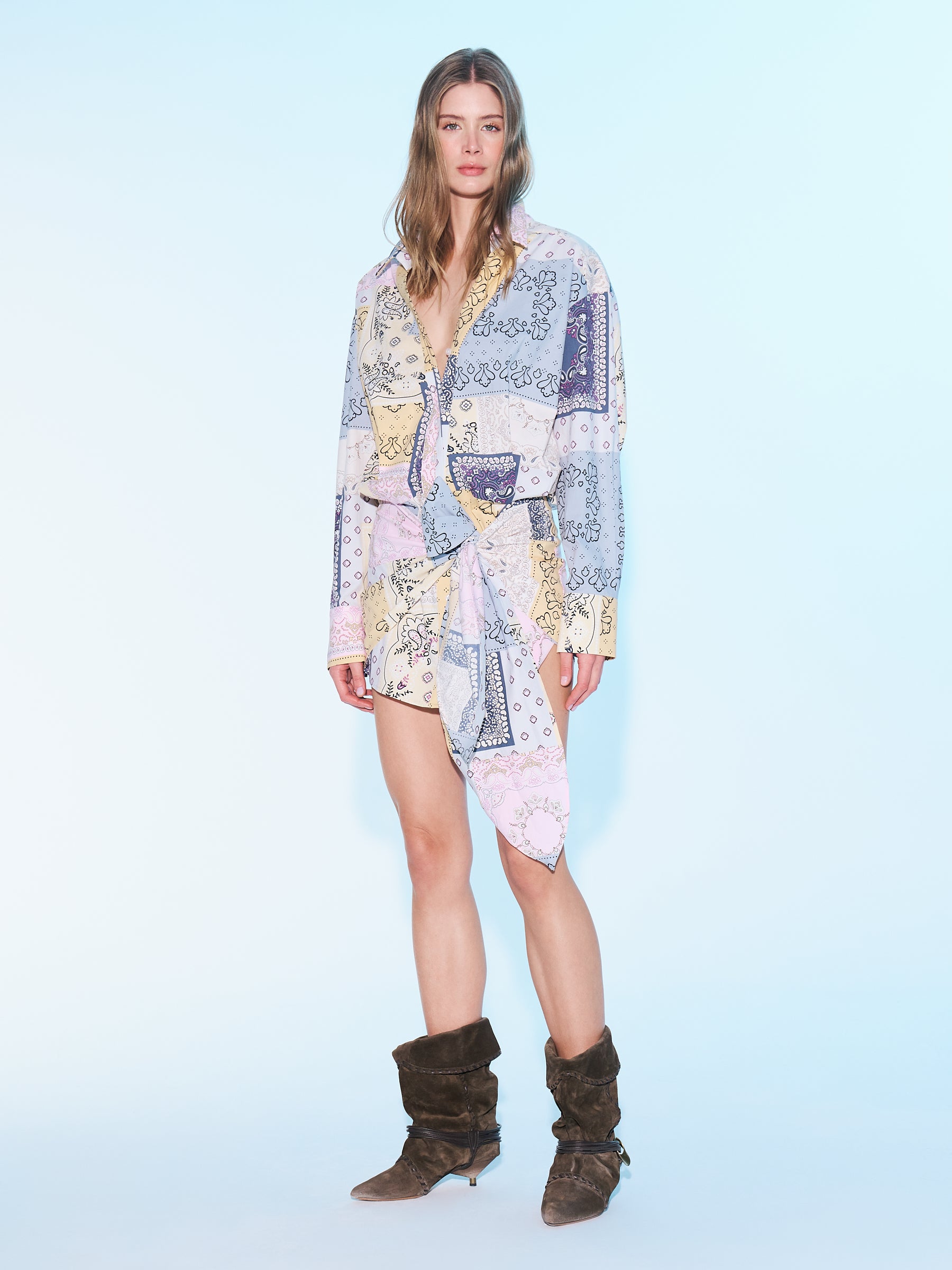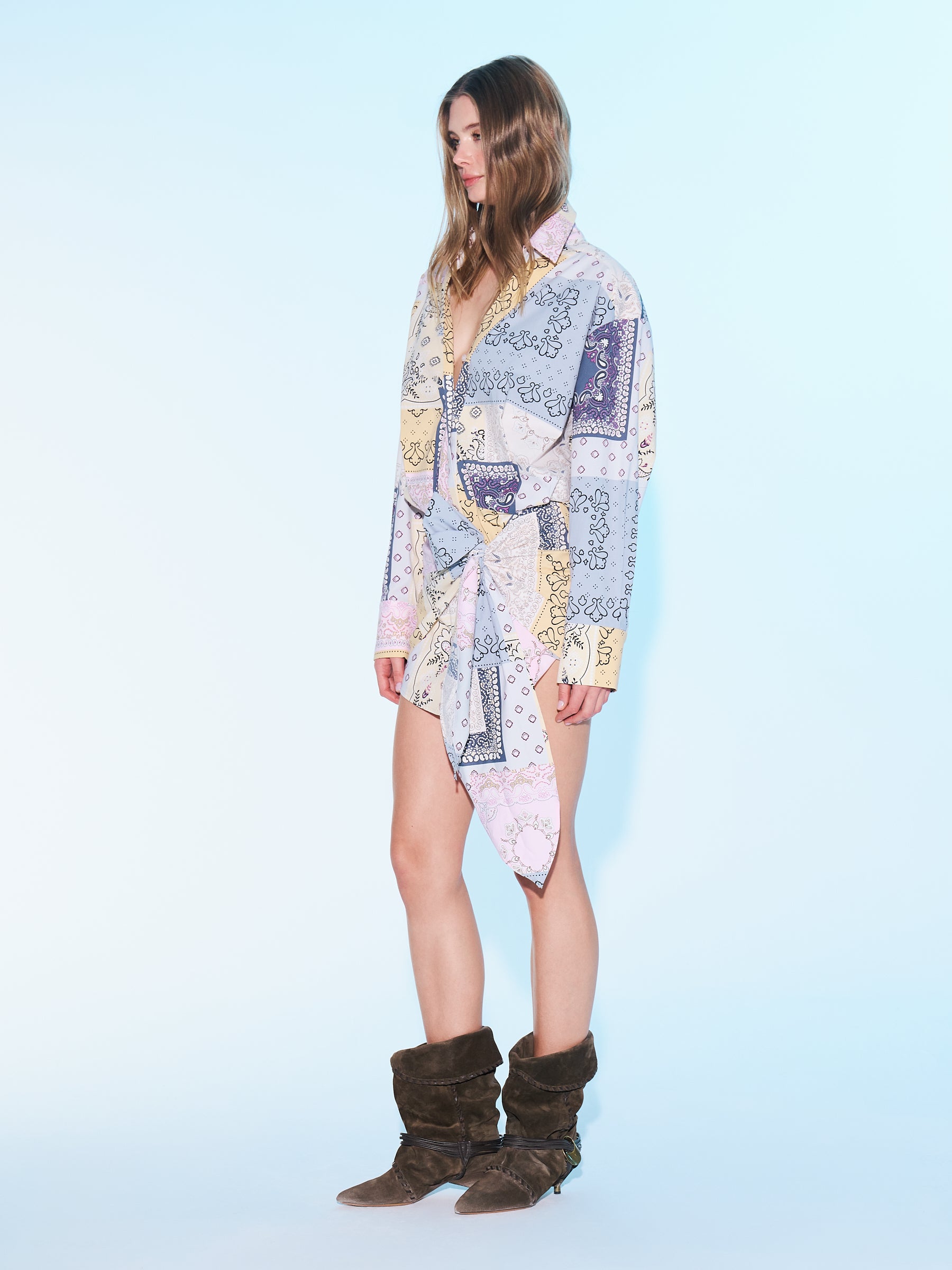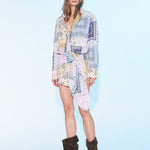 Şal desenli, bağlama formlu, uzun kollu gömlek mini elbise.; MODEL BOYU: 1.78 CM MODEL BEDENİ : 34 MODELİN BELİ : 60 CM BASENİ :91 CM DİR .; %97 PAMUK % 3 ELASTAN