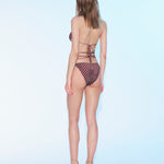 KALP AKSESUAR DETAYLI,ÇAPRAZ BAĞLAMALI,ÜÇGEN İPLİ PUANTİYE DESENLİ BİKİNİ SETİMODEL BOYU:1.78 CM MODEL BEDENİ: 34 MODELİN ÖLÇÜLERİ; GÖĞÜS:92 CM BEL: 60 CM BASEN:91 CM DİR.; %80 POLYESTER %20 ELASHANE
