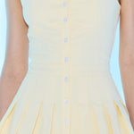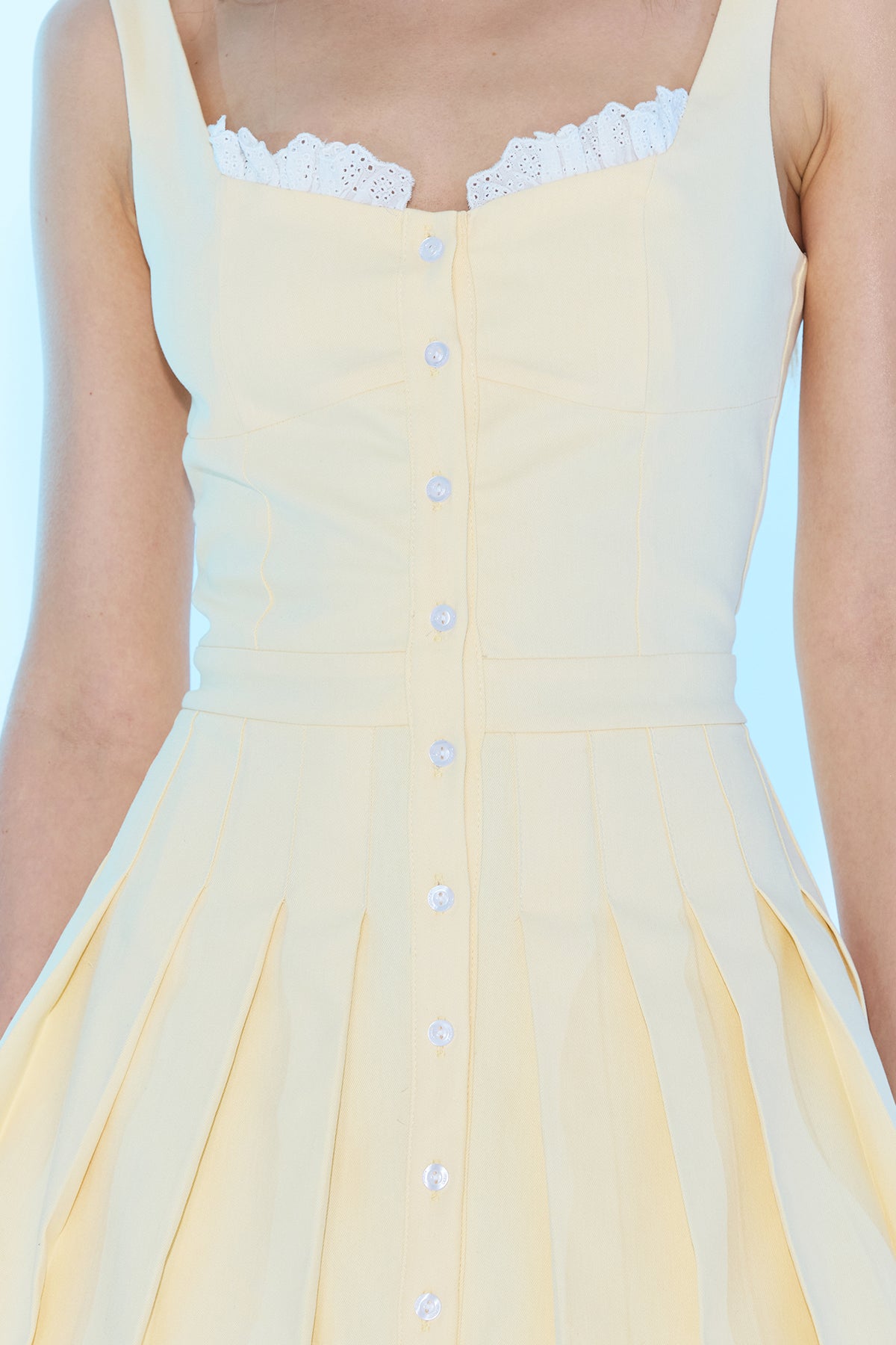 Eteği pileli, önden düğme kapamalı, kare yaka, dekolte ve etek bitimi fisto fırfır detaylı mini elbise.; MODEL BOYU: 1.78 CM MODEL BEDENİ : 34 MODELİN BELİ : 60 CM BASENİ :91 CM DİR .; TEST AŞAMASINDA