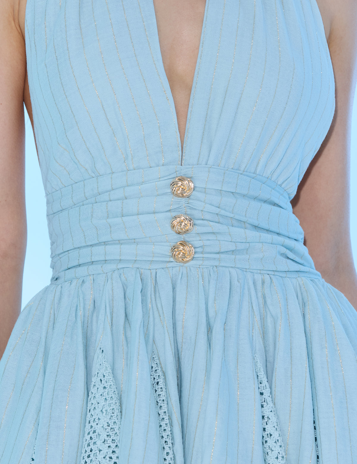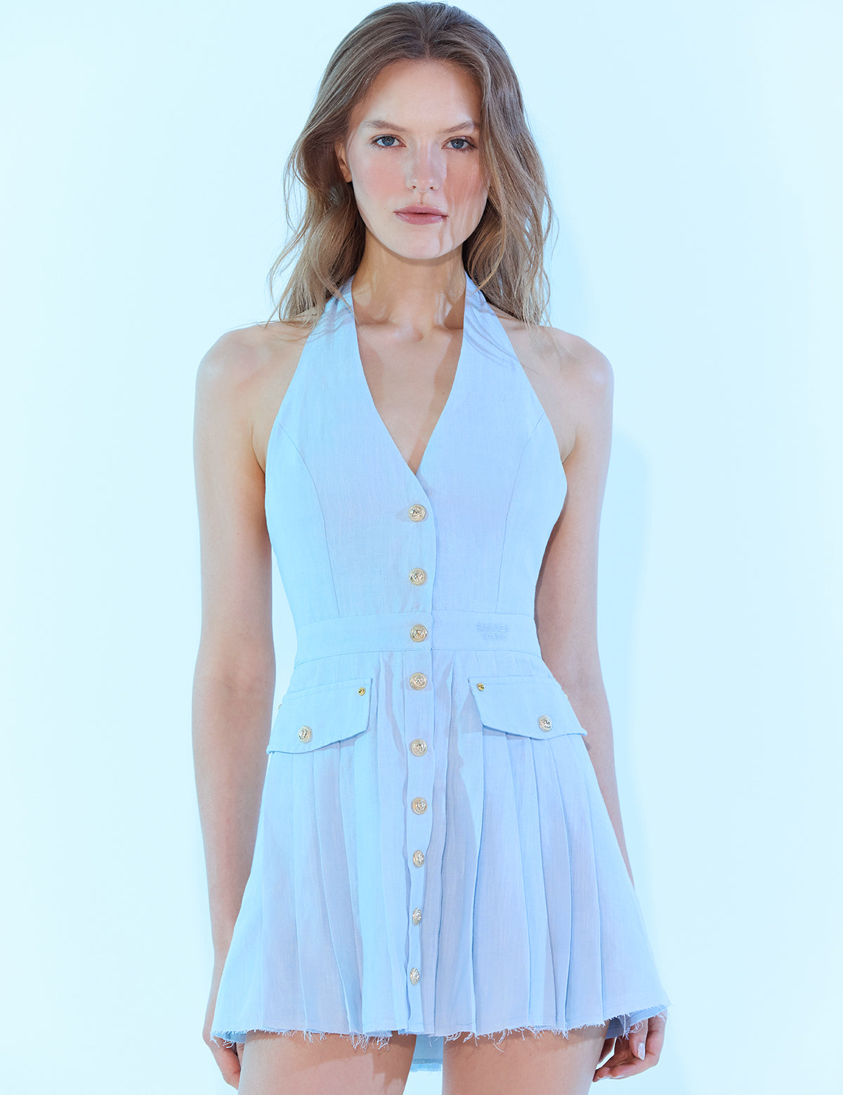 S6047 LAMBADA BOYUNDAN BAĞLAMALI MİNİ ELBİSE