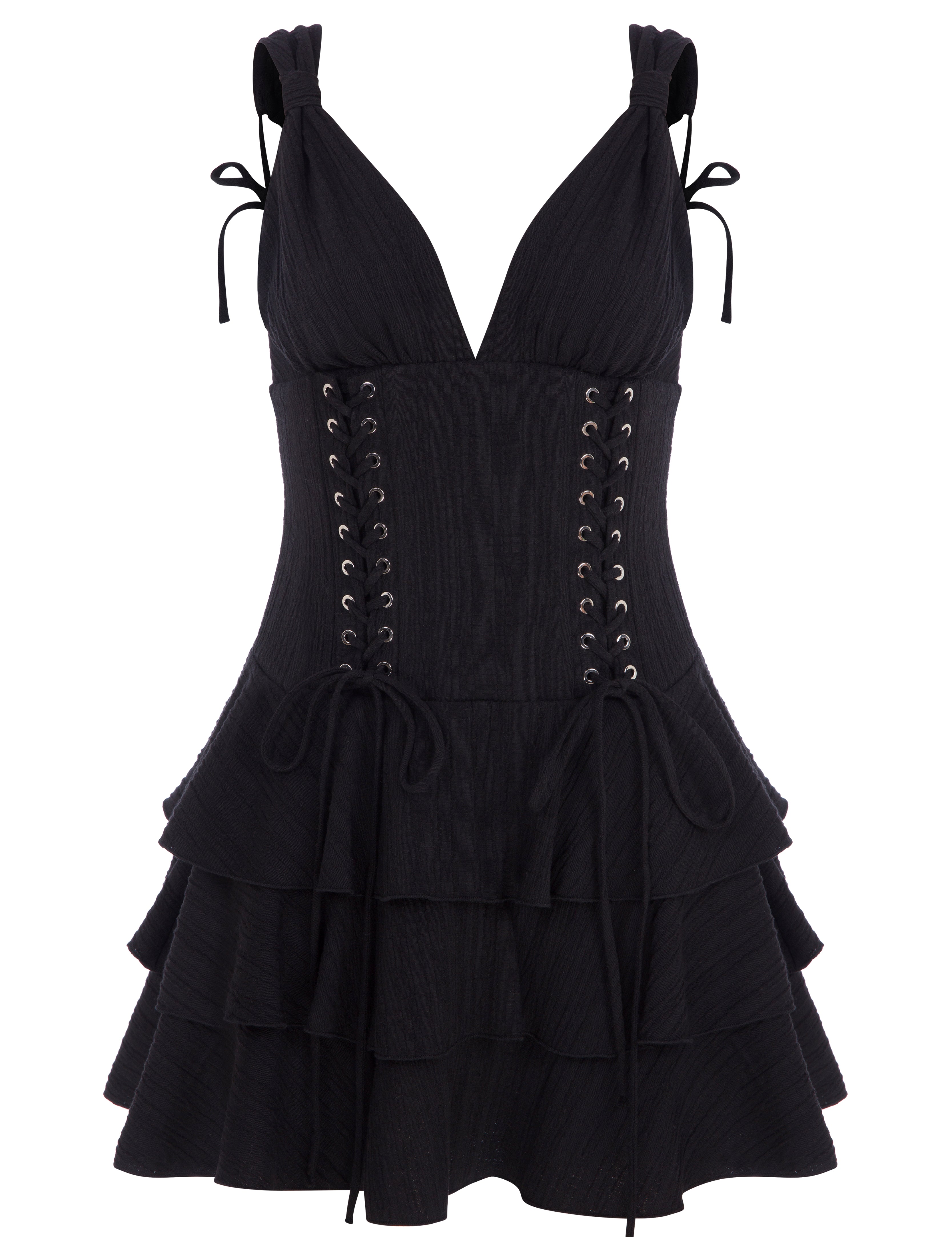 SS6047 LAMBADA BOYUNDAN BAĞLAMALI MİNİ ELBİSE
