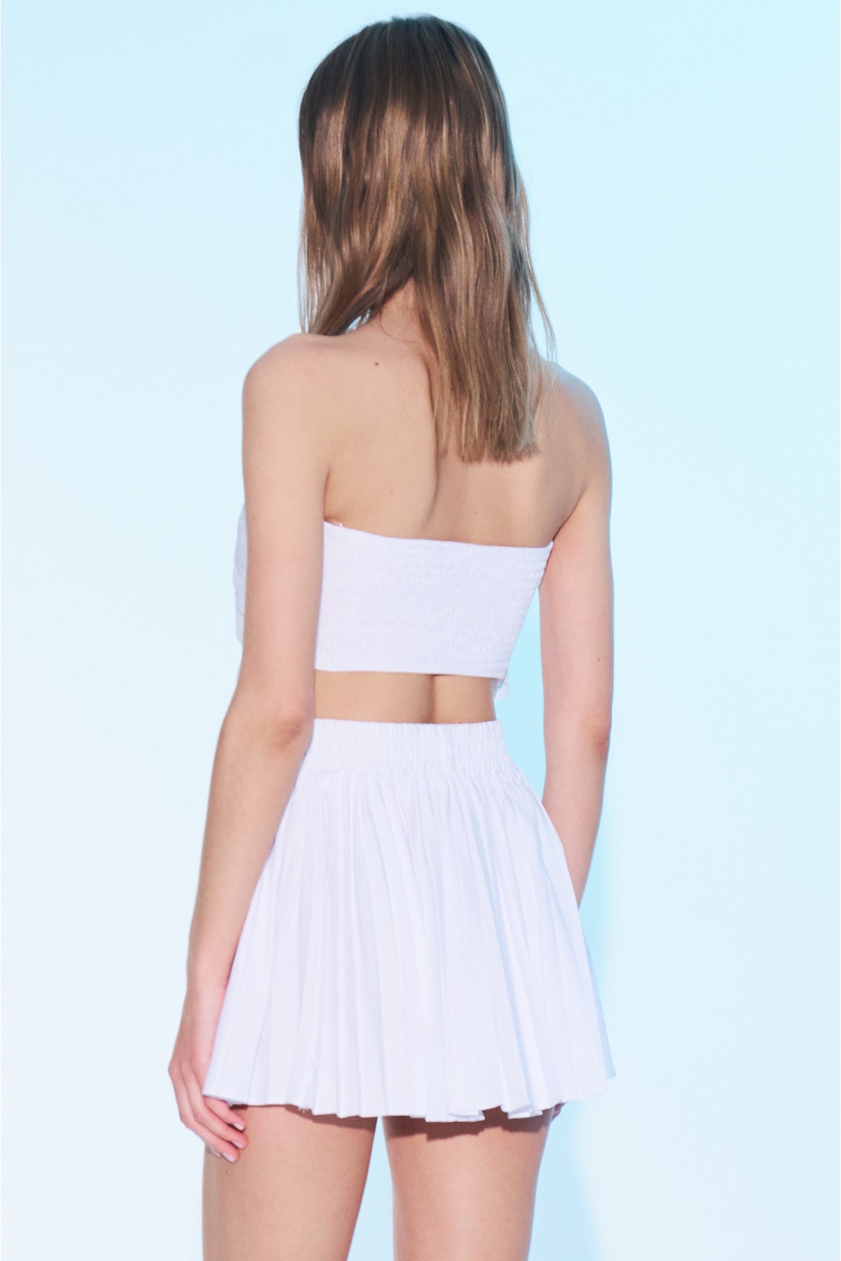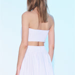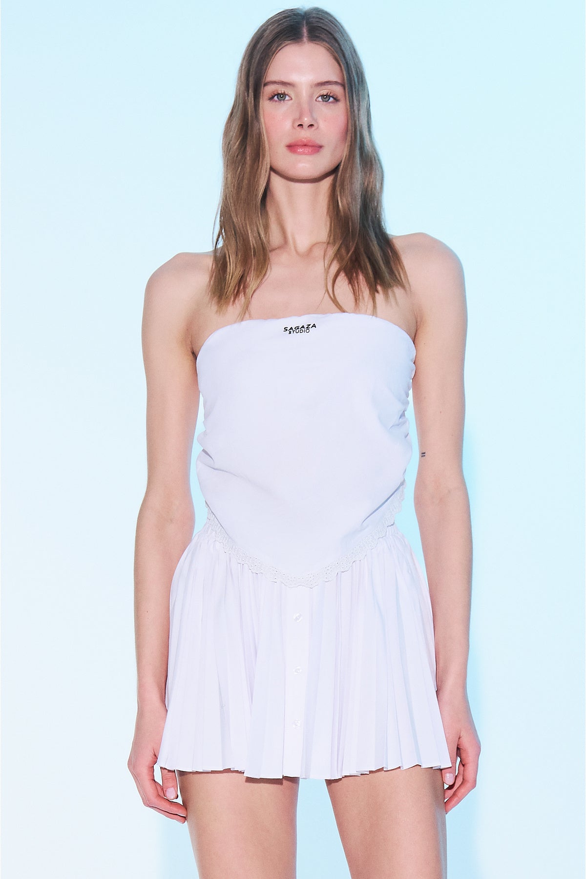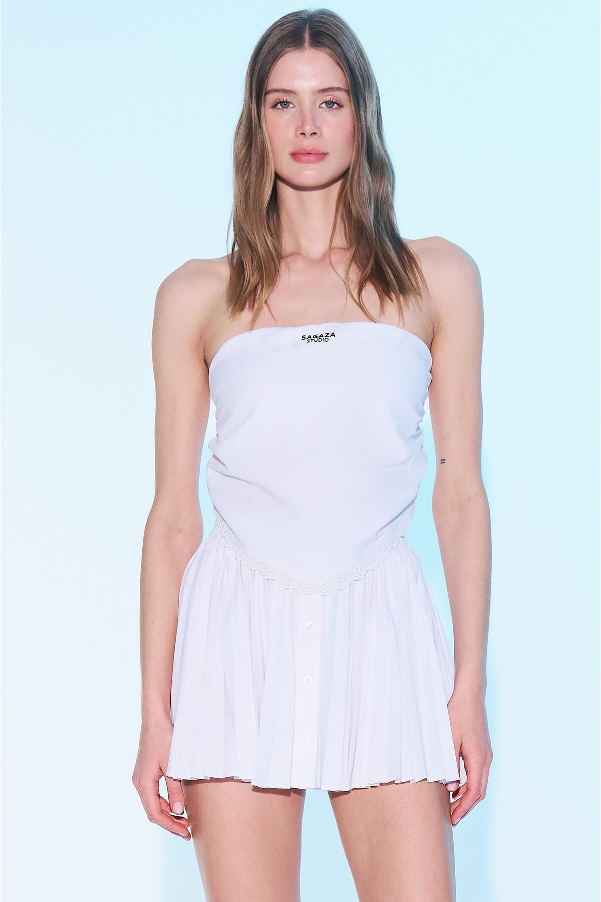 SAGAZA LOGO NAKIŞLI, ARKADAN GİPE LASTİKLİ, AÇIK MAVİ BEYAZ ÇİZGİLİ ÜÇGEN STRAPLEZ TOP.; MODEL BOYU:1.78 CM MODEL BEDENİ: 34 MODELİN ÖLÇÜLERİ: GÖĞÜS:92 CM BEL: 60 CM BASEN:91 CM DİR.; ÖN BOY:40 CM GÖGÜS:34 CM BEL:34 CM %50 PAMUK % 50POLYESTER