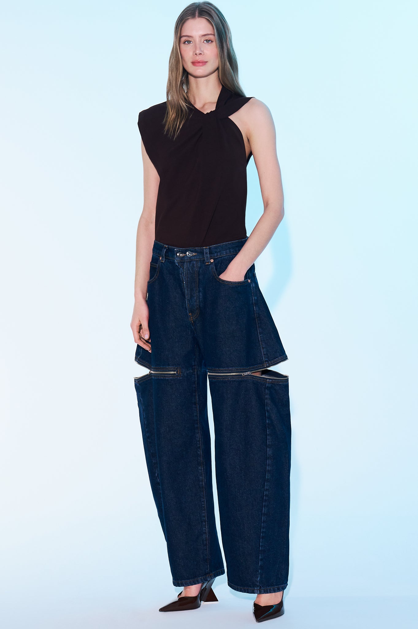 Boyundan düğüm detaylı, SAGAZA nakış detaylı kolsuz tshirt MODEL BOYU: 1.78 CM MODEL BEDENİ : 34 MODELİN BELİ : 60 CM BASENİ :91 CM DİR .; %96 PAMUK %4 ELASTAN
