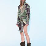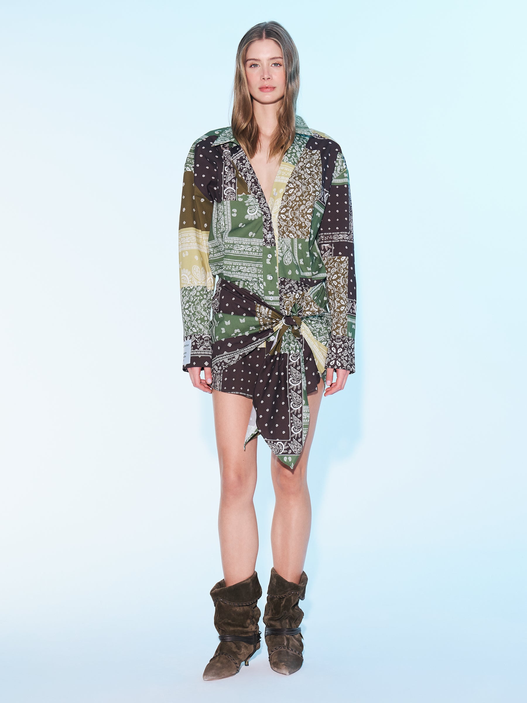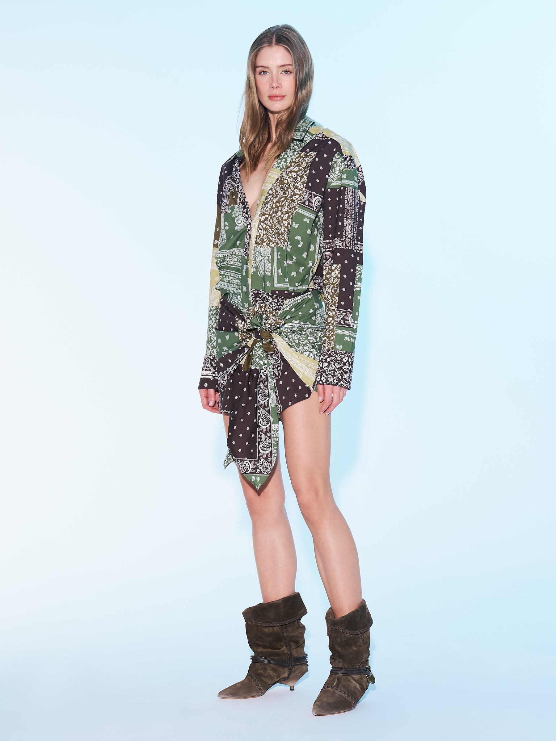 Şal desenli, bağlama formlu, uzun kollu gömlek mini elbise.; MODEL BOYU: 1.78 CM MODEL BEDENİ : 34 MODELİN BELİ : 60 CM BASENİ :91 CM DİR .; %97 PAMUK % 3 ELASTAN